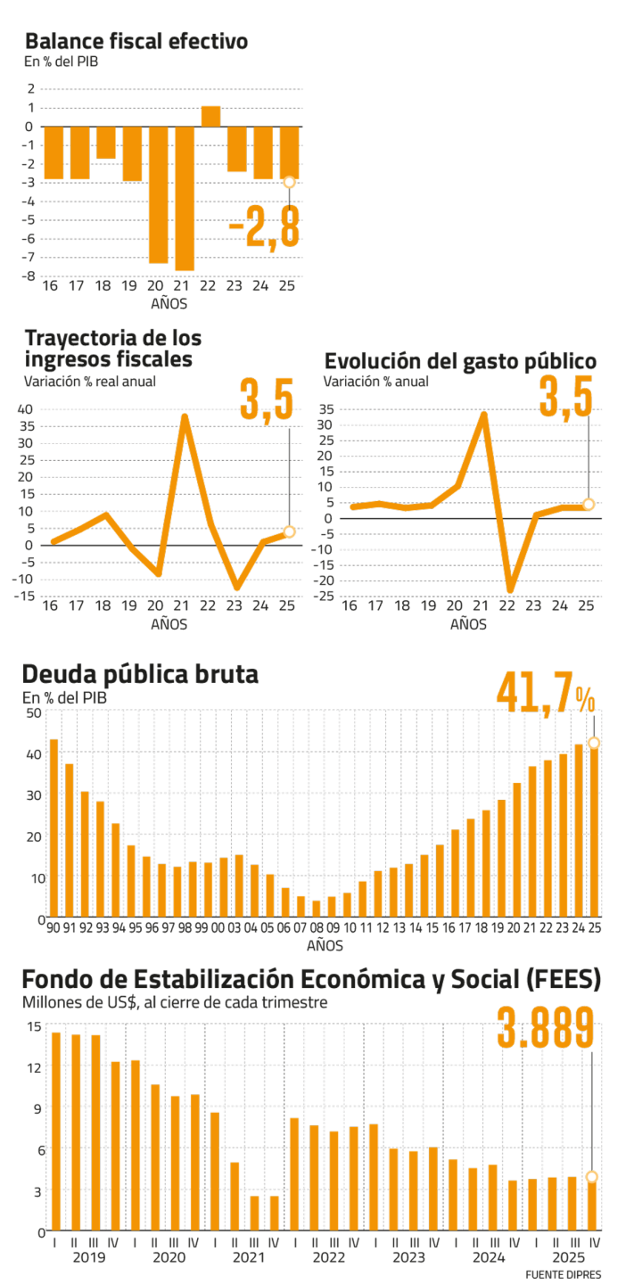 "Este Gobierno ha sido especialmente riguroso y responsable en materia de gasto y hemos gastado cada vez menos como porcentaje del PIB y hemos logrado frenar la deuda. Eso es un resultado importante”, dijo el ministro, quien recalcó que 2025 fue el primer año desde 2007 que el endeudamiento como fracción del Producto no aumentó.