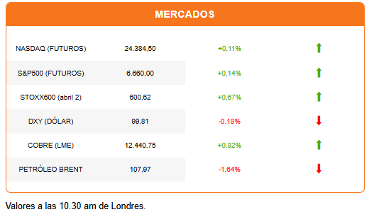 Fuera de la guerra en Irán, los grandes negocios continúan. Las acciones de Broadcom suben 3,82% antes de la apertura, tras reportes de un acuerdo para proveer chips con tecnología de Google a Anthropic, con un contrato hasta 2031.