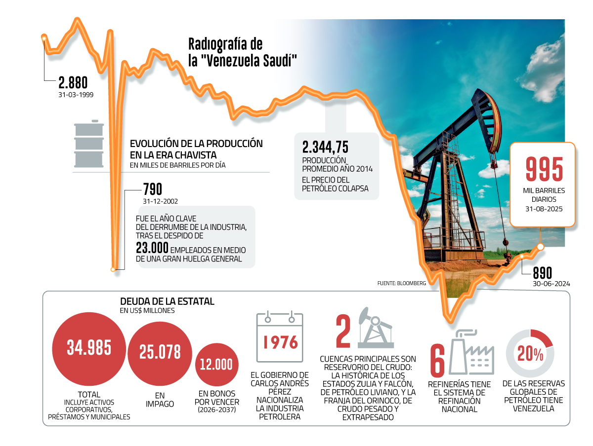 Con una producción de más de 3 millones de barriles diarios (mbd), Pdvsa competía con la poderosa compañía saudí Aramco y era más relevante que gigantes como ExxonMobil, BP y Royal Dutch-Shell.
