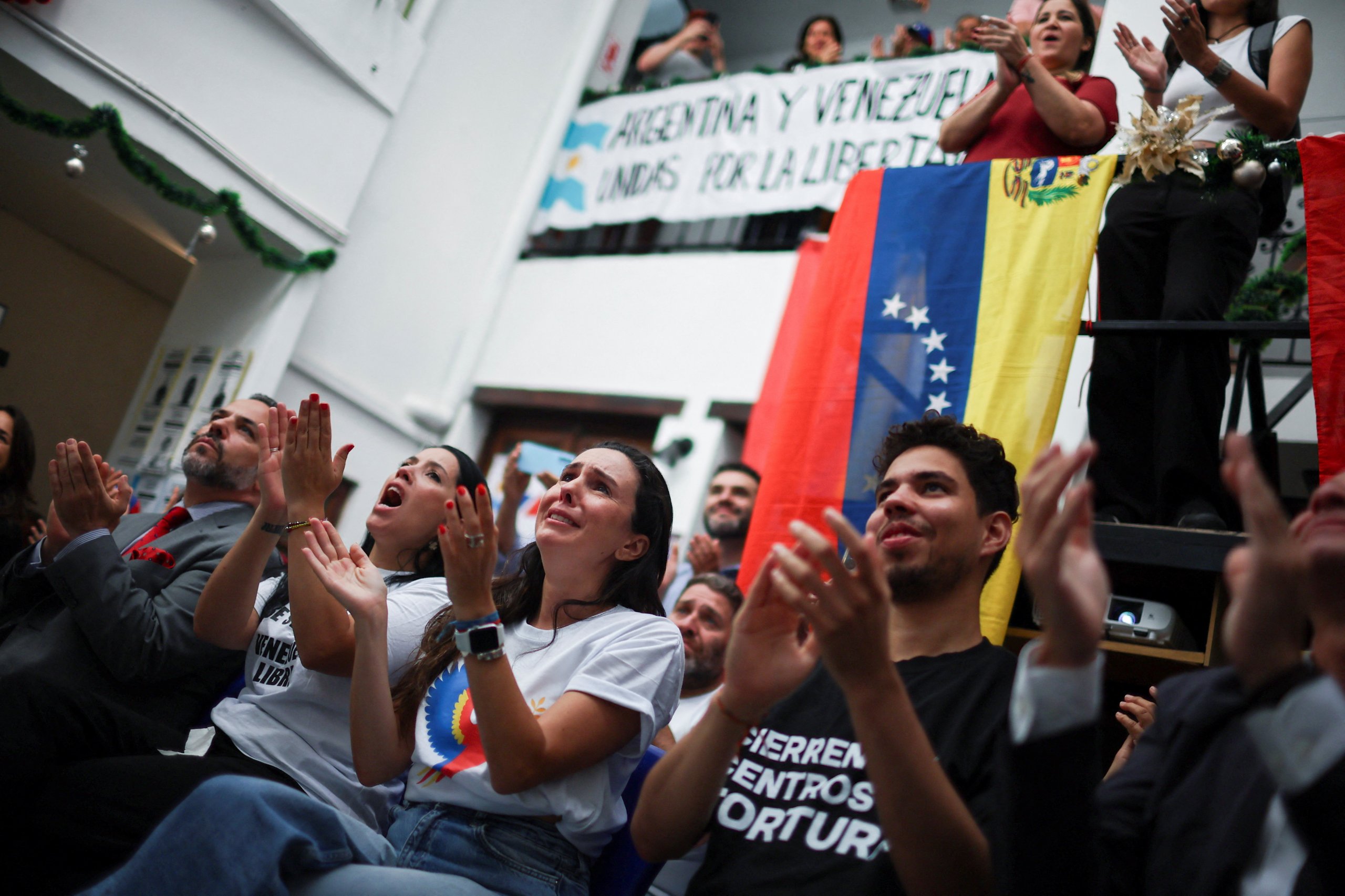 A Machado se le prohibió el año pasado presentarse a las elecciones presidenciales a pesar de haber ganado las primarias de la oposición por una mayoría aplastante a fines de 2023. Se ocultó en agosto de 2024 después de que las autoridades intensificaran las detenciones de dirigentes de la oposición tras la controvertida votación.