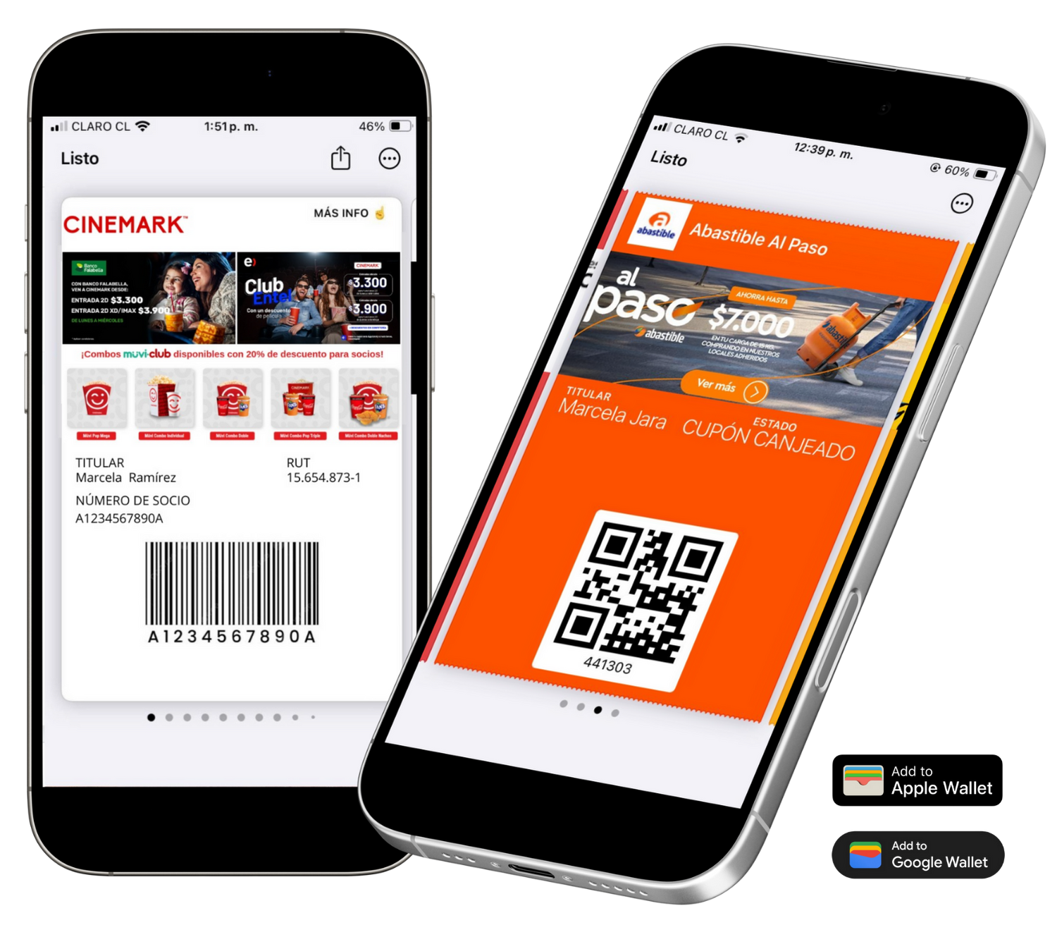 - Somos Wallet: la firma chilena crea experiencias digitales directamente en Apple Wallet y Google Wallet, habilitando cupones, descuentos y notificaciones basadas en ubicación o comportamiento del usuario.