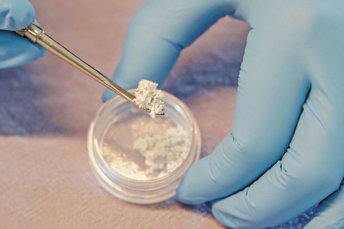 El material se esteriliza con rayos gamma en la Comisión Chilena de Energía Nuclear y se comercializa en formato granulado, en gramos. “Cuando se hidrata, se transforma en una pasta muy manejable para el cirujano, que se aplica directamente en la zona donde se necesita regenerar hueso”, explicó Dupré.