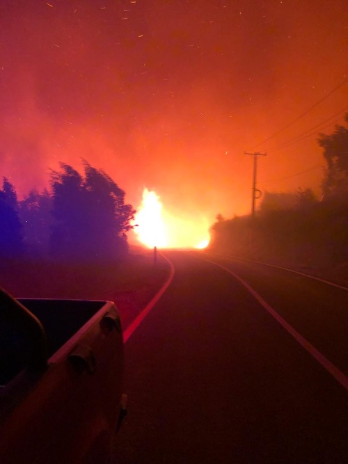 El fuego partió en la ruta Itata, cruzó el camino y llegó a la altura del sector El Durazno, en Primera Agua, y de ahí se vino al sector Antenas de Primera Agua. Yo subí de nuevo a ese sector cerca de las 19, tenía cinco carros de bomberos y una unidad forestal, pero tuvimos que salir arrancando a eso de las 20:30: el fuego venía muy rápido hacia las casas. Bajamos al sector La Laguna para volver a rearmarnos.