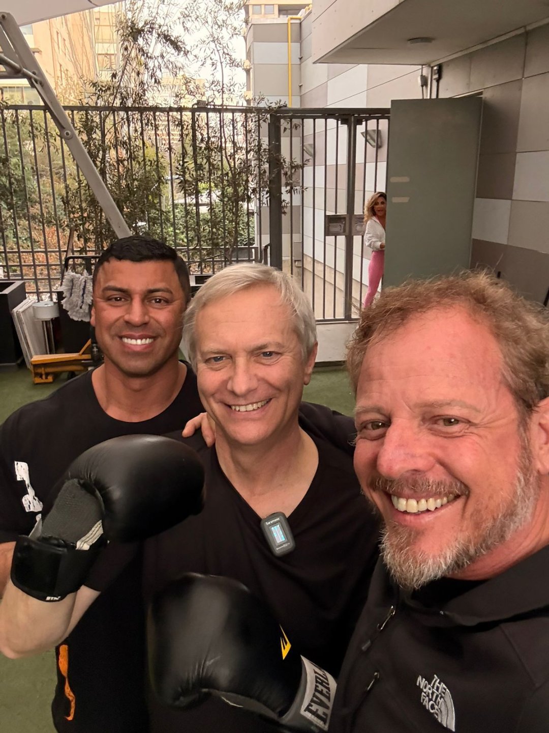 Julio de 2025: Kast junto a su health coach, Alex Wiesner, y al personal trainer que éste le designó: Eduardo Navarrete.