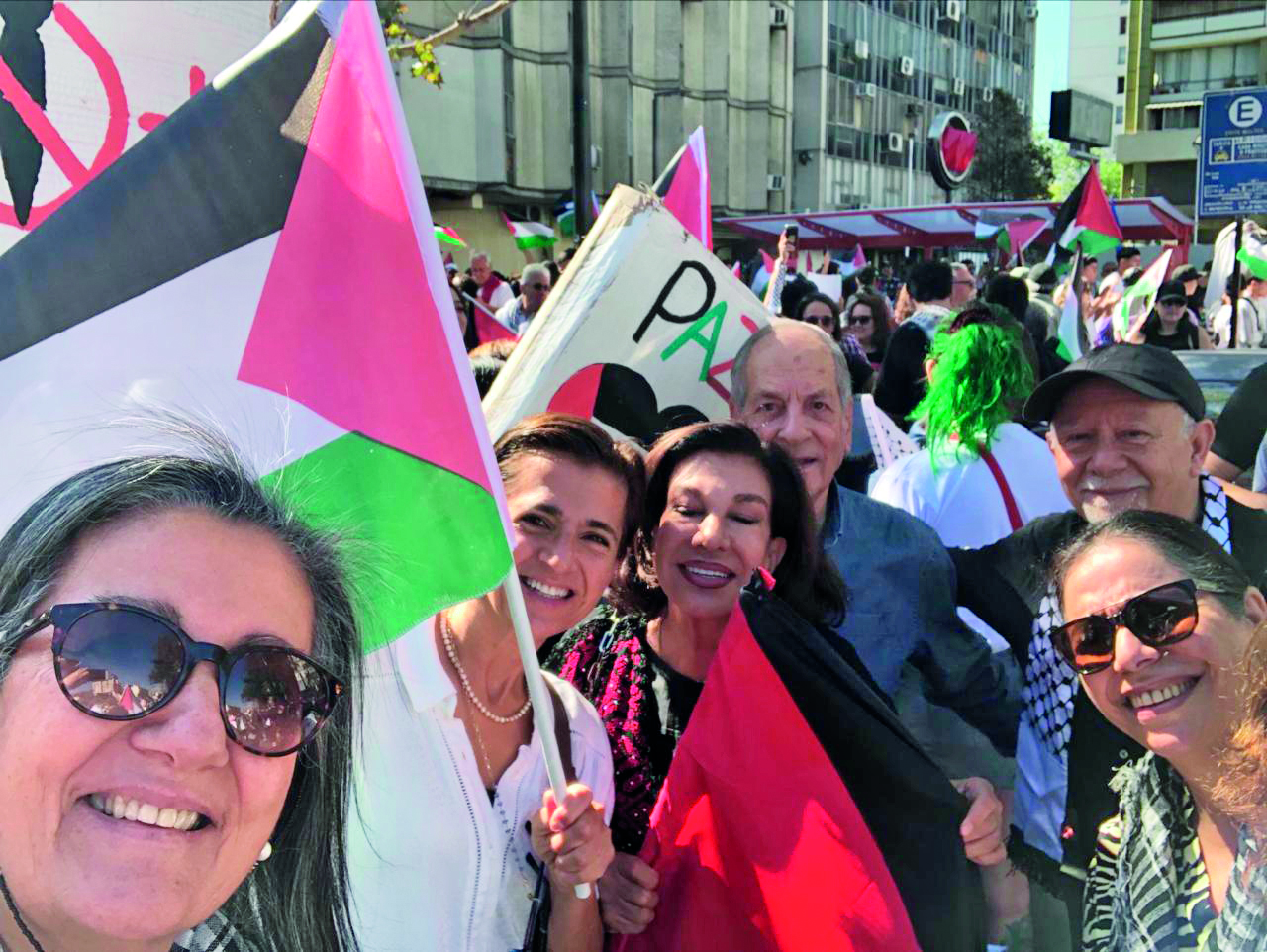 Teresa Chomali es prima en segundo grado de la próxima ministra de Salud y es también doctora. Formó un grupo que se llama Médicos por Palestina. El año pasado, cuenta, hicieron una marcha donde participó May. Organizaron además otras acciones, juntaron dinero y trataron de enviar insumos médicos quirúrgicos. “Como familia mantenemos vínculos directos con Palestina, con parientes allá”, explica Teresa. “May participó en alguna ocasión conmigo, aunque no es tan comprometida como yo.”