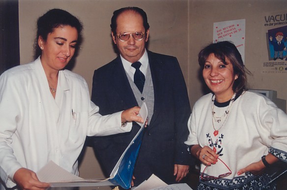 En ese servicio, Chomali trabajó -entre otros profesionales- con Teresa Morales, educadora en salud, quien participaba en las campañas que emprendía el SSMO. En ellas era donde interactuaban directamente. “Yo ya estaba aquí cuando ella entró, era muy joven. Trabajando con nosotros se embarazó de su hija Gabriela. A mí me tocaba trabajar con la May en las campañas educativas del servicio, íbamos a los consultorios, a los hospitales. Humanamente ella era muy conciliadora, acogedora, respetuosa. Su estilo era muy organizado, técnico siempre, generaba respeto entre nosotros. Era simpática, pero seria. No la profesional que se hace la chistosa”.
