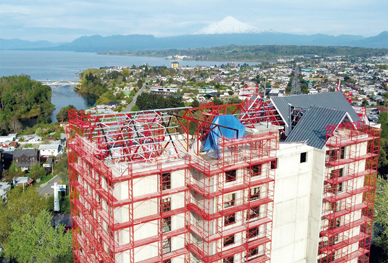 Vista desde la azotea de Terratoltén, proyecto de tres edificios de departamentos actualmente en construcción, en Villarrica.