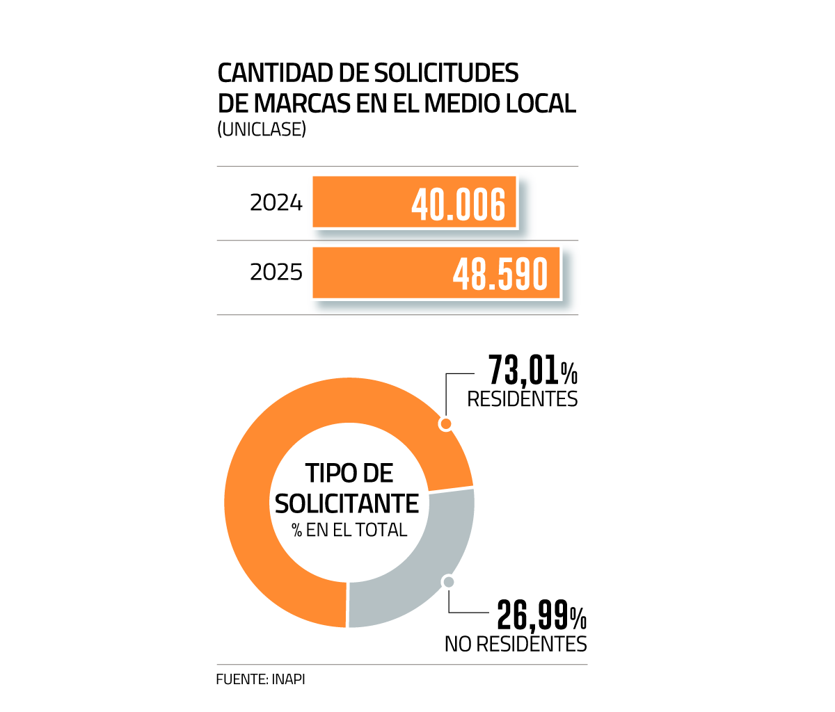 Un año con saldo a favor fue 2025 para las solicitudes de marcas en el país. Este ítem, de acuerdo a lo informado por el Instituto Nacional de Propiedad Intelectual (Inapi), registró un aumento levemente superior a 13% al alcanzar las 64.508 al 1 de diciembre pasado, frente a 57.057 del mismo período del ejercicio previo.