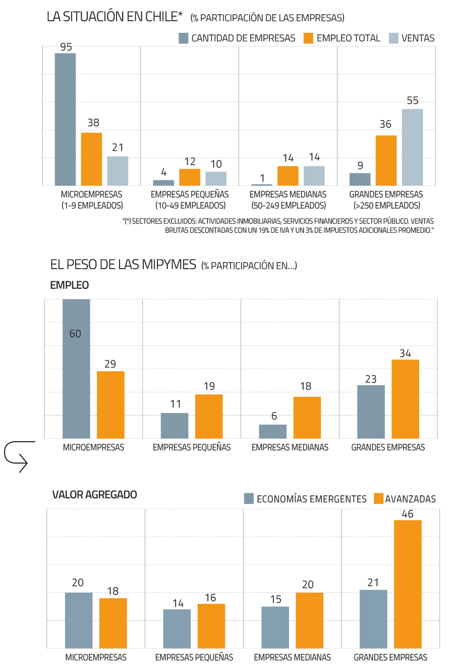 Con relación a su aporte al PIB, este es cercano al 50% en las primeras, y 55% en el caso de las segundas.