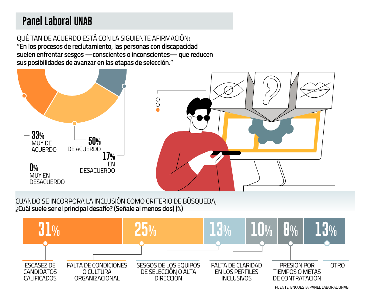 De hecho, un 88% de los integrantes del panel reconoció que las personas con discapacidad suelen enfrentar sesgos, conscientes o inconscientes, que reducen sus posibilidades de avanzar en los procesos de selección.
