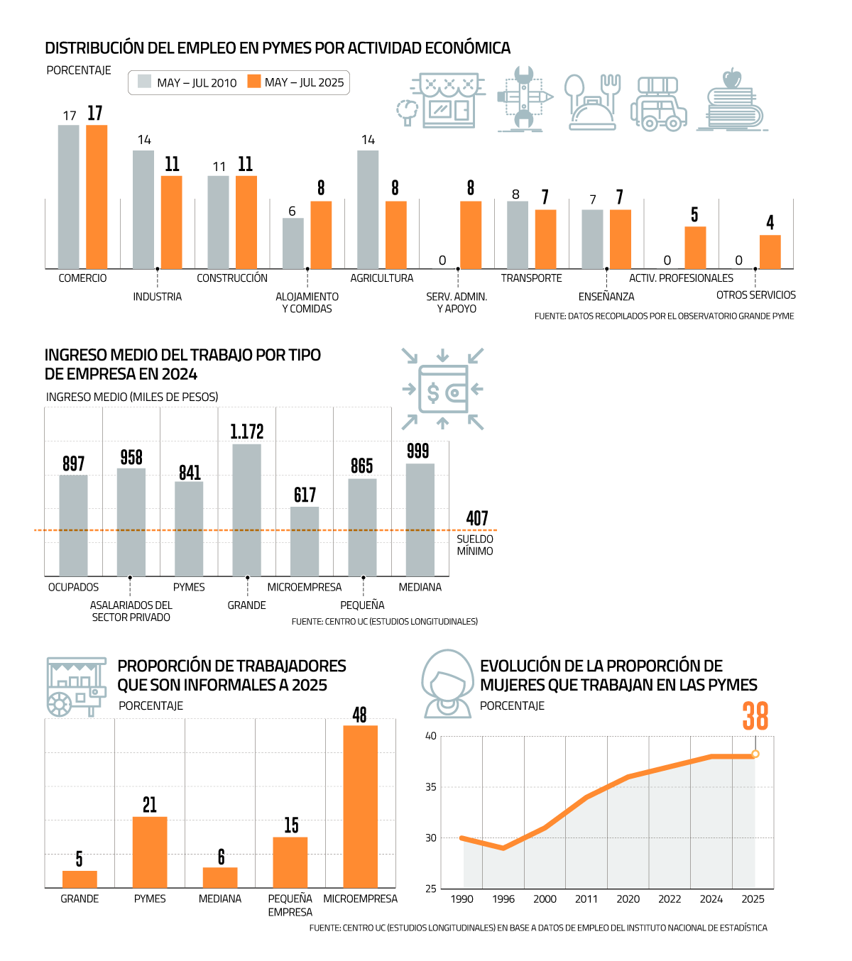 Las pequeñas y medianas empresas (PYME) son protagonistas permanentes del acontecer nacional. Y no solo porque son muchas, sino porque ocupan a un alto número de la población disponible para trabajar, tal como lo reafirmó un estudio del Observatorio Grande PYME, junto al Centro UC de Encuestas y Estudios Longitudinales.