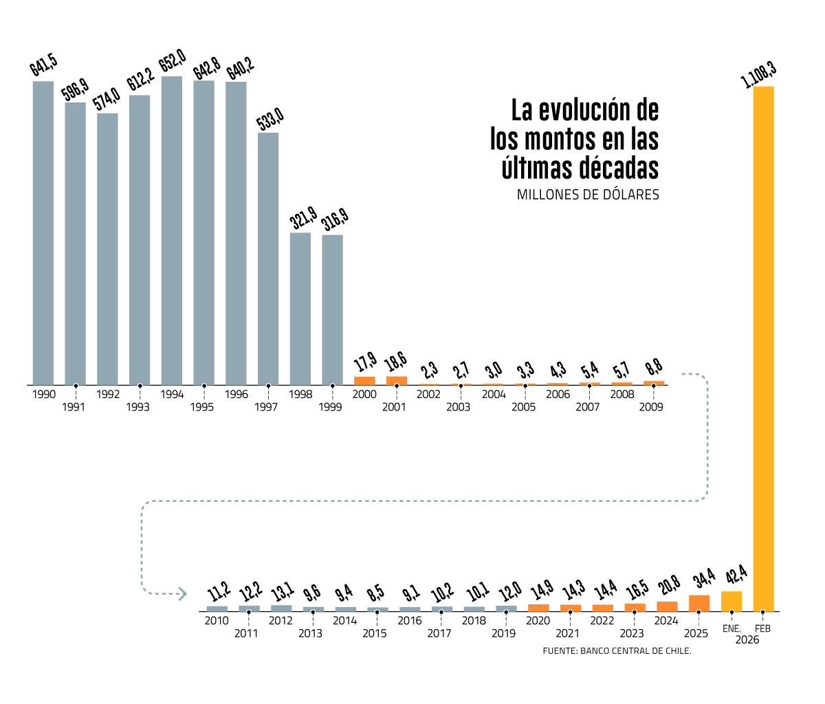 Consultado por Diario Financiero, el instituto emisor señaló que “en febrero de este año, el Consejo del Banco Central de Chile autorizó la compra de oro, decisión que se enmarca en evaluaciones técnicas periódicas para definir la composición de monedas e instrumentos en que se invierten las reservas internacionales”.
