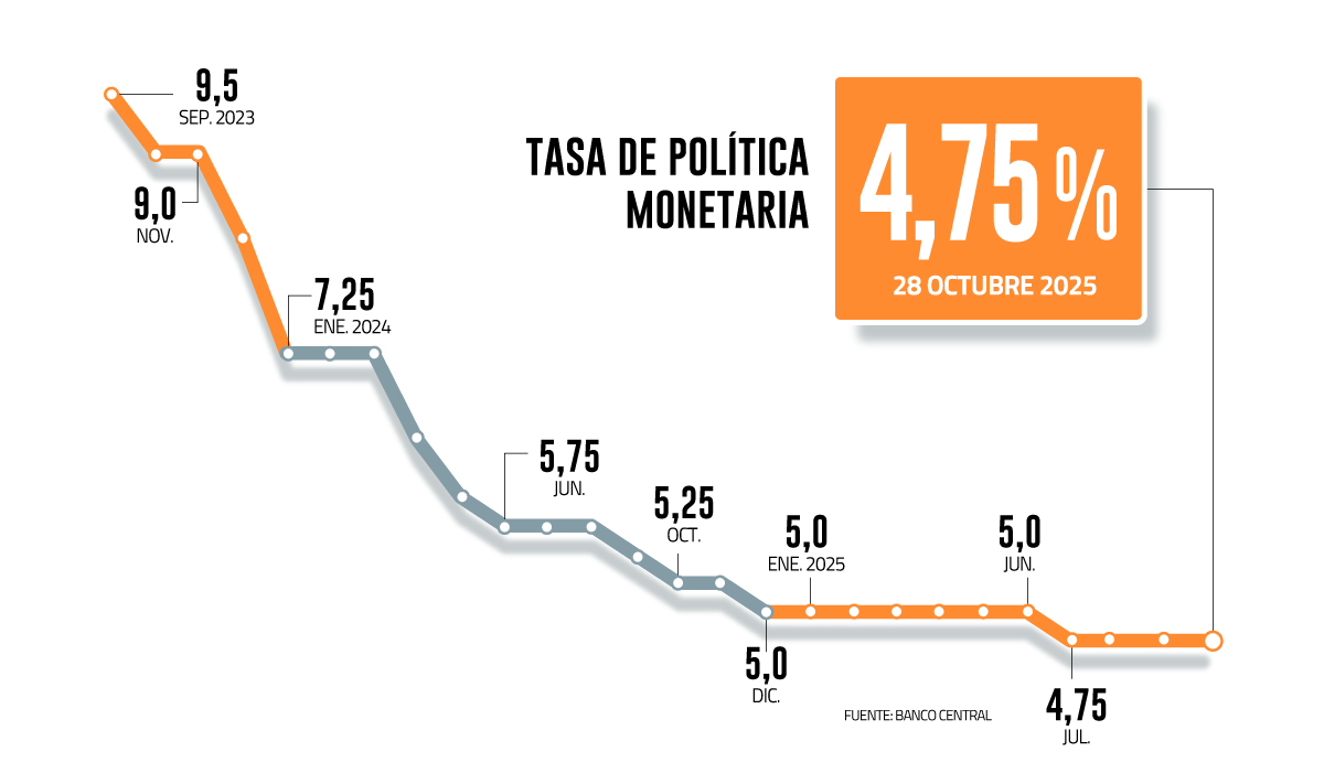 Sin sorpresas. Tal como se esperaba, el Consejo del Banco Central se inclinó en forma unánime este martes por mantener la Tasa de Política Monetaria (TPM) en 4,75%.