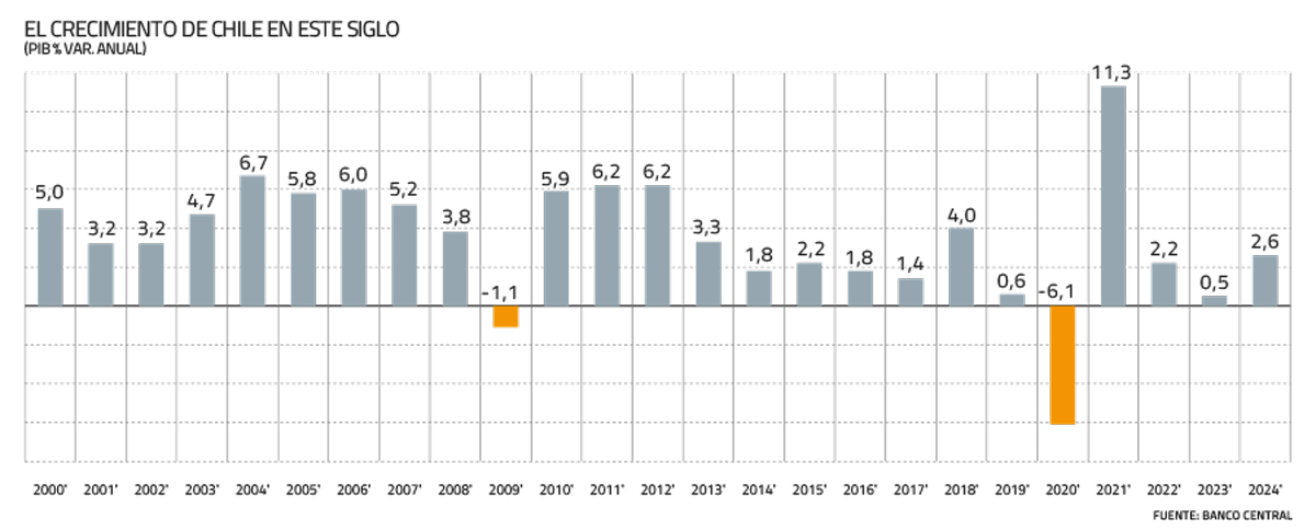 “Pese a los precios históricamente elevados del cobre en 2026, el impacto alcista sobre el crecimiento del PIB sería moderado. En otras palabras, el shock de precios del cobre impulsaría la actividad, pero sin generar grandes desviaciones respecto de nuestro escenario base actual ni un retorno a tasas superiores al 4% observadas en décadas previas”, complementó el analista de Pacífico Research, Sebastián Díaz.