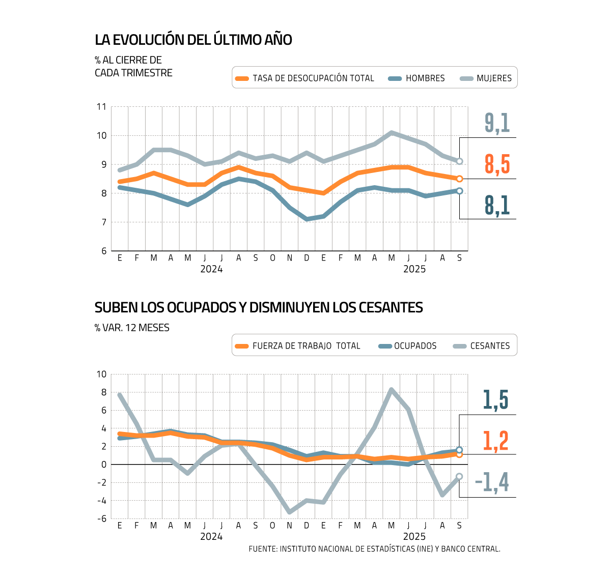 En 8,5% se ubicó la tasa de desocupación en Chile durante el trimestre julio-septiembre, de acuerdo con la información publicada este miércoles por la Encuesta Nacional de Empleo (ENE), elaborada por el Instituto Nacional de Estadísticas de Chile (INE).