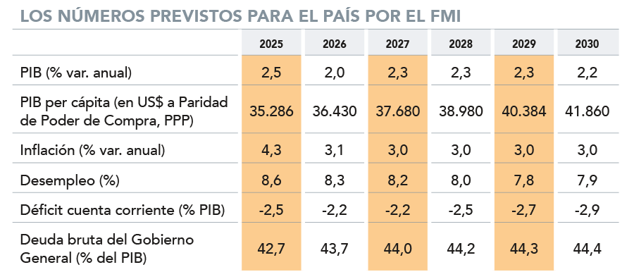 El FMI prevé que la economía local crecerá un 2% en 2026, expansión que se aceleraría hasta un 2,3% en los tres años siguientes.