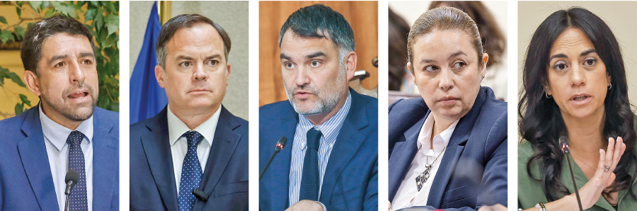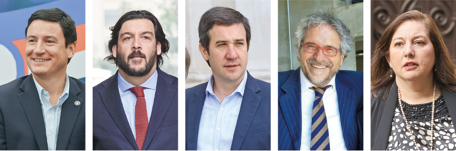 Raúl Leiva, diputado Socialista. Guillermo Ramírez, presidente de la UDI y diputado. Carlos Cuadrado, diputado electo PPD. Paulina Vodanovic, presidenta del PS y senadora. Arturo Squella, Presidente del PR y senador electo.