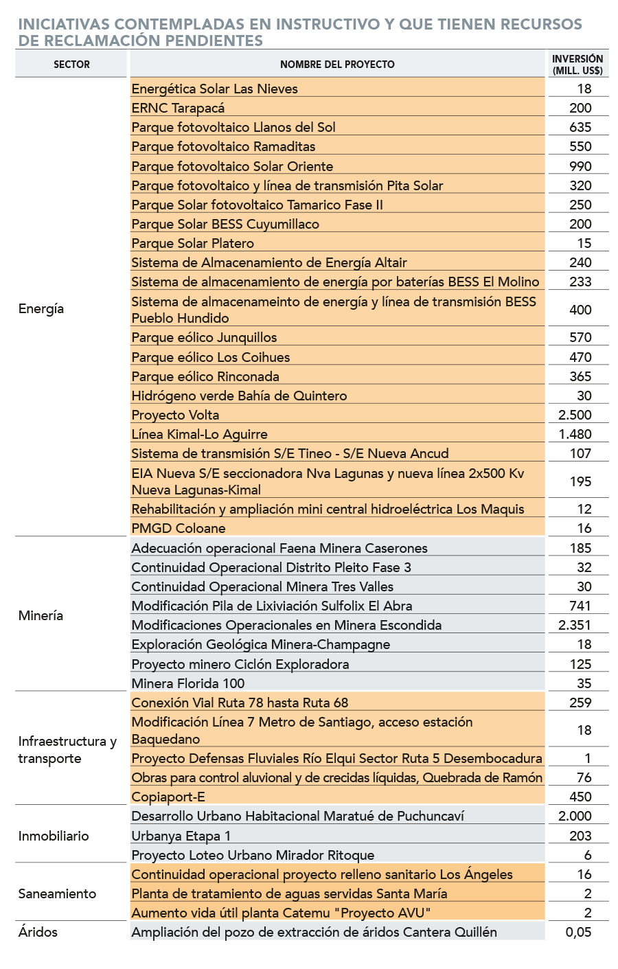 Del total de 42 iniciativas, 22 corresponden al sector energético, mientras otras ocho al minero.