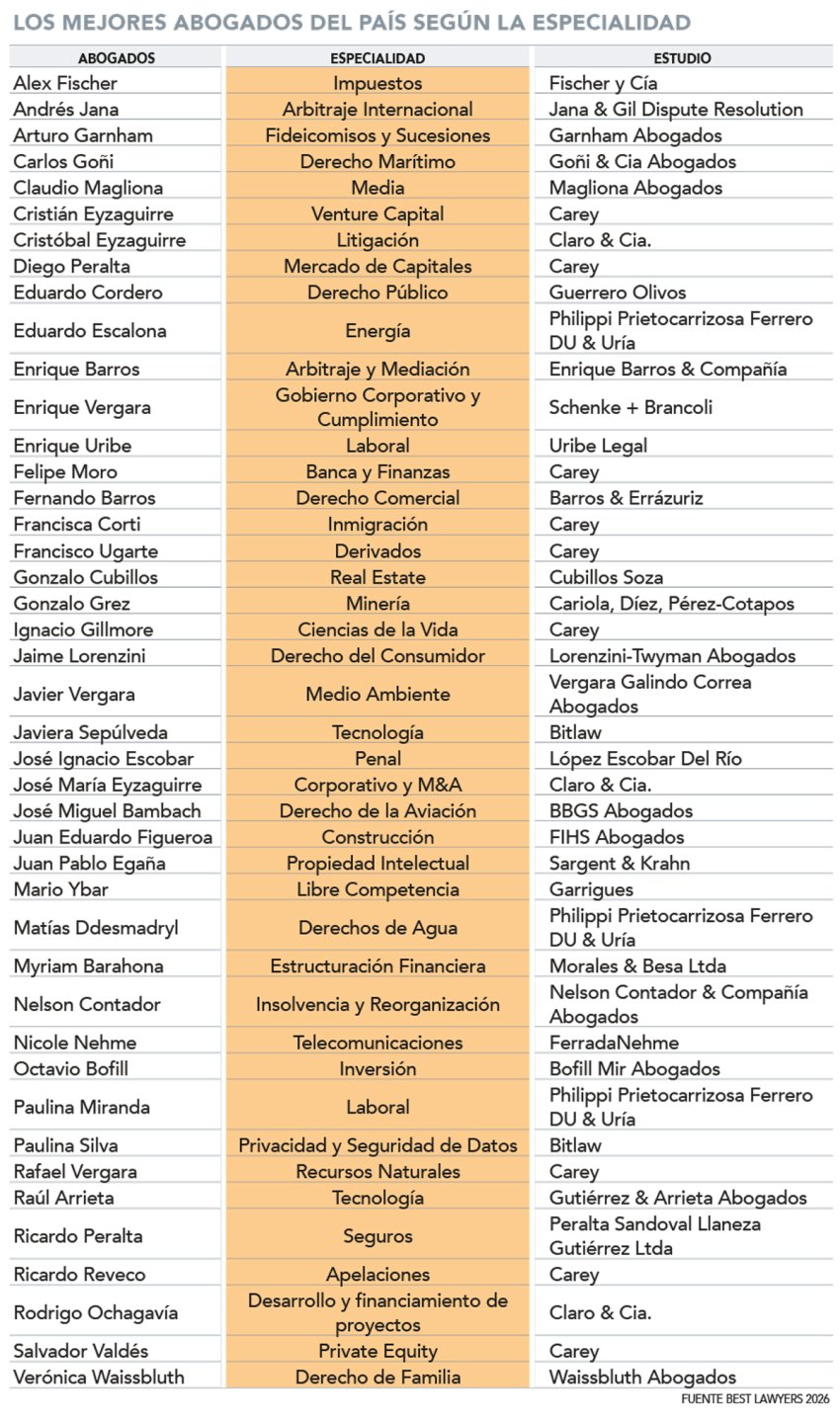 En su versión decimosexta, la publicación especializada de origen estadounidense Best Lawyers reveló los nombres de los mejores estudios y abogados chilenos para 2026, entre un universo de cerca de 400 firmas y más de 1.000 especialistas en distintas materias que analizó para esta edición.