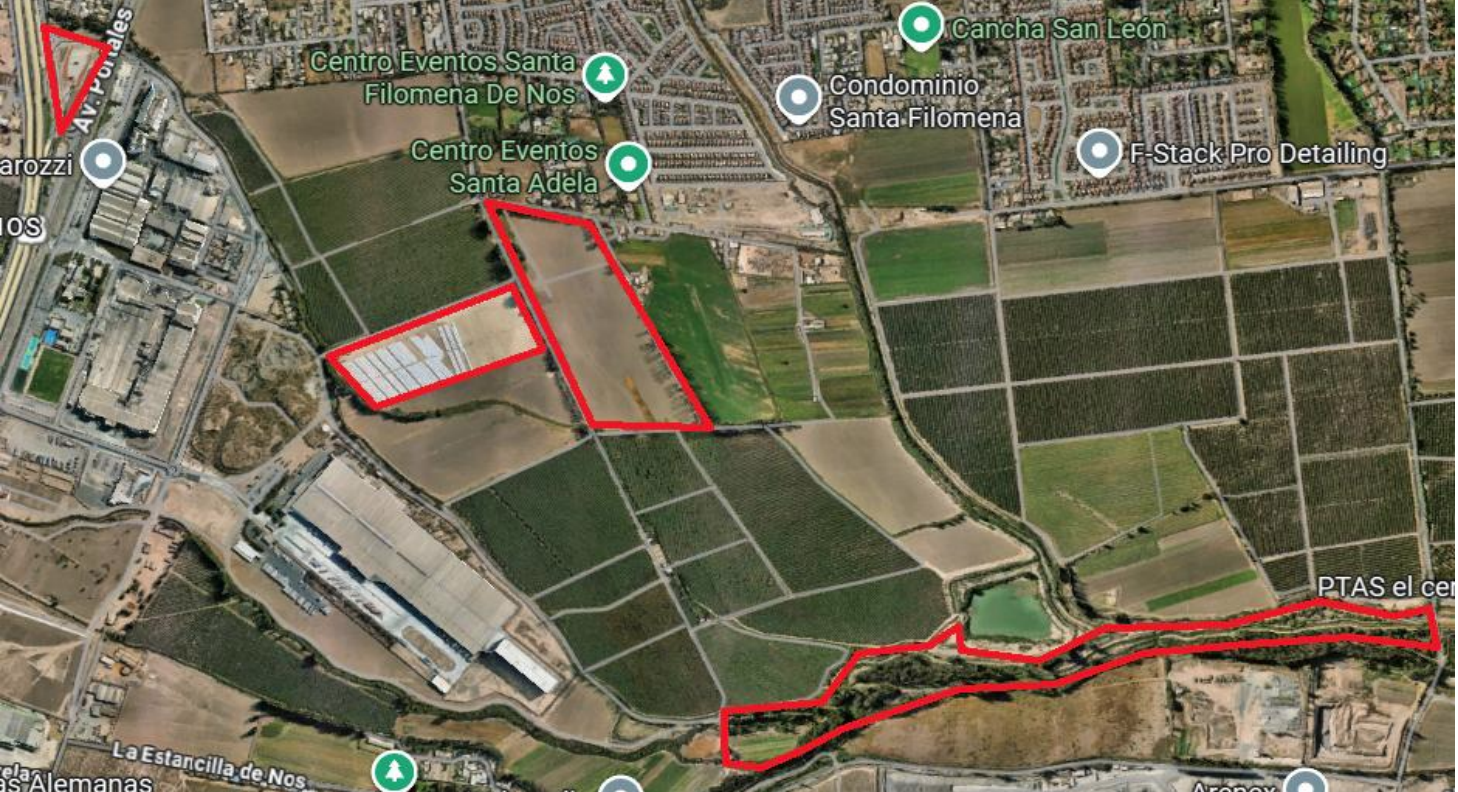 El segundo terreno es 18,9 hectáreas en el sector rural–periurbano de la comuna de San Bernardo, colindante al río Maipo. Un tercer terreno es de 7,72 hectáreas colindante al oriente de la Planta Industrial Carozzi. El último es un terreno en el sector de avenida El Cerrillo de 10,48 hectáreas.
