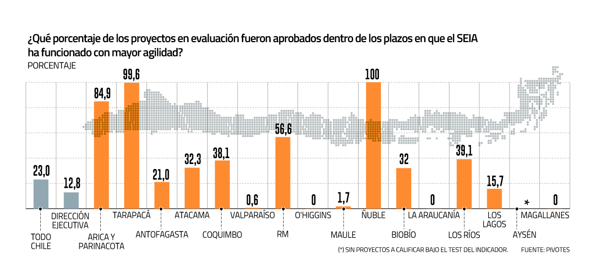 En esto, explican desde Pivotes, pudo incidir el clima político y económico de poner mayor atención a este tema, a lo que podría sumarse la preocupación del Servicio de Evaluación Ambiental (SEA) por cumplir los plazos. Sin embargo, recalcan, la baja en la efectividad de la evaluación ambiental debe seguir manteniendo la alerta.