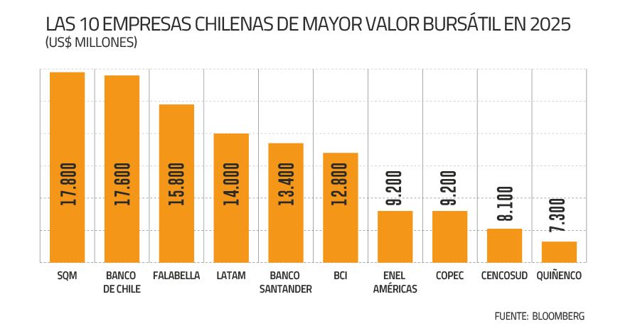 Sin embargo, solo una logró coronarse como la empresa de mayor valor de mercado al cierre de 2025: SQM.