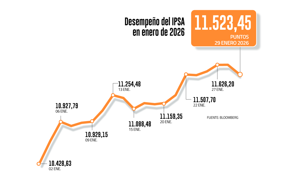 Con una sola sesión restante, al cierre de este jueves, el IPSA acumula un avance de 10% en lo que va del mes, y con ello su desempeño lo llevaría a cerrar como el mejor arranque de año desde 1997, cuando el índice registró un incremento de 10,54%.El segundo enero que le sigue en el ranking fue 2006, cuando subió 7,8%.Si bien este jueves, el IPSA cayó 0,90% para ubicarse en 11.523,45 puntos, el mercado destaca su performance.“El desempeño de 2026 ha sido extraordinariamente positivo y muy por sobre lo que dicen los fundamentales”, aseguró el gerente de estudios de Renta 4, Guillermo Araya.