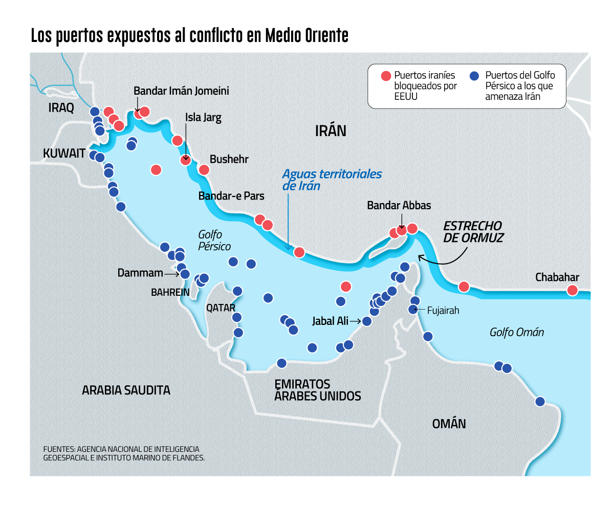 Una vez que la Armada estadounidense hizo efectivo el mandato del Presidente Donald Trump, con más de 15 buques de guerra que cortan el flujo de ingresos que la República Islámica obtenía de la exportación de 2 millones de barriles de petróleo diarios desde sus puertos (ver infografía), el líder republicano optó por una retórica beligerante.