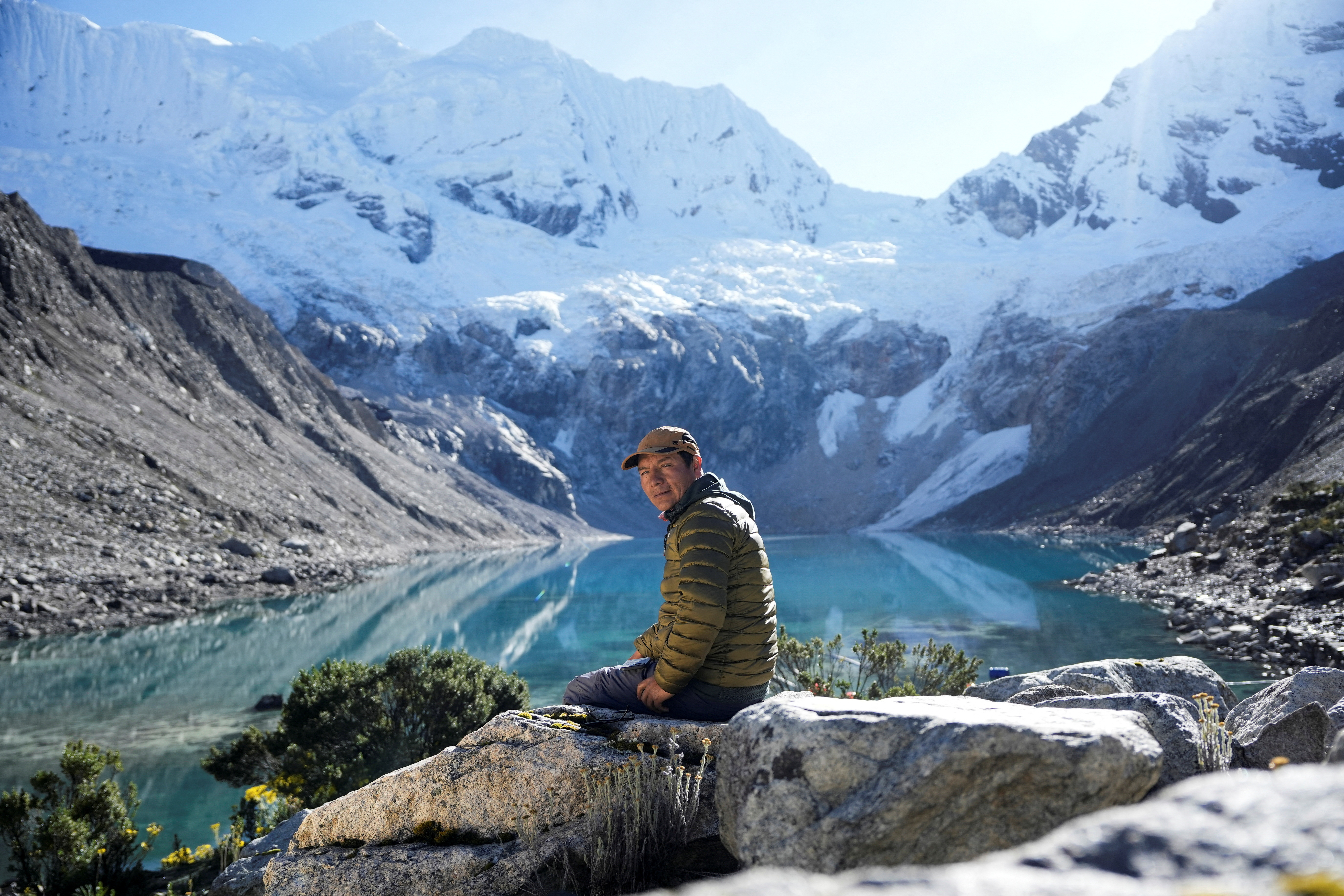 El agricultor peruano Saúl Luciano Lliuya posa ante el glaciar Palcaraju hasta el lago Palcacocha © Reuters.