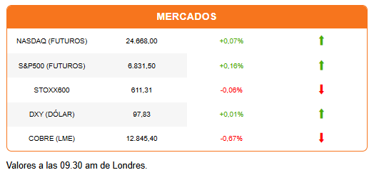 Otros índices también intentan sacudirse la ola de pesimismo. Las acciones europeas operan planas tras un inicio de sesión en rojo, y los futuros de Wall Street tratan de defender ligeros avances.