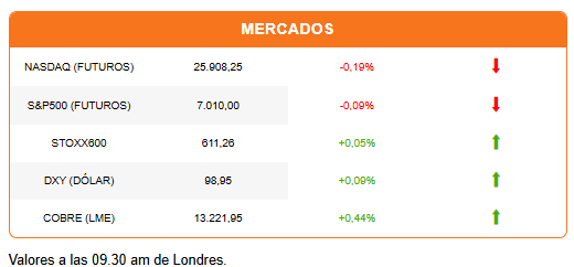 Los futuros de Wall Street esperan los datos de inflación y el inicio de la temporada de resultados con pérdidas moderadas, siguiendo una sesión mixta en Asia y Europa. El dólar repunta, impulsado principalmente por la caída del yen, que se depreció a su menor nivel desde 2024. Los metales operan mixtos, pero el cobre extiende su avance y opera firme sobre los US$13.000 por tonelada en la LME y sobre los US$6 por libra en el Comex.