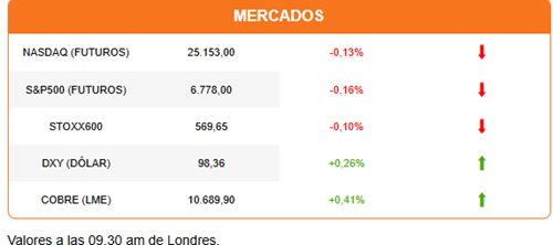 - 08:30 El Banco Central publica su boletín estadístico y el informe mensual y trimestral de Estadísticas Monetarias y Financieras.