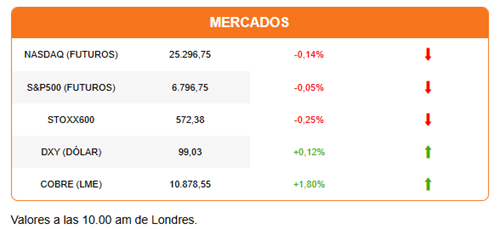 El escenario en el resto del mercado es mixto. Las acciones tecnológicas extendieron el rally durante la jornada en Asia, que también estuvo marcada por el regreso de China tras un largo feriado de una semana. En Europa, los bancos y las acciones de defensa ponen el freno en la sesión, mientras tecnológicas y mineras marcan nuevas alzas. Los futuros de Wall Street operan con ligeras caídas, pero se mantienen muy cerca de sus niveles récord. El dólar extiende su repunte y alcanza su mayor nivel en dos meses; mientras que el oro se toma un respiro y opera con una caída moderada pero todavía bien por encima de los US$ 4.000 por onza.