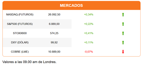 Entre los commodities, la atención está en el petróleo. Durante el fin de semana, la OPEP decidió que pausará los aumentos de producción a partir del primer trimestre de 2026. La decisión ayuda a moderar el temor de un exceso de suministro y llevó a un alza de 0,43% del crudo.