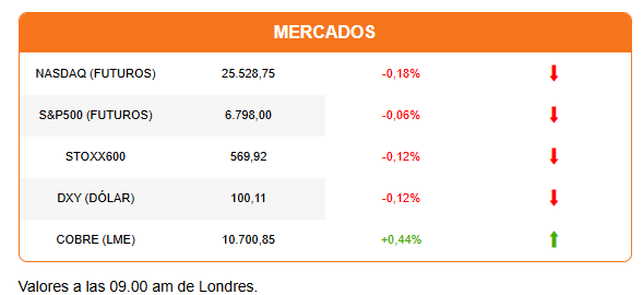 Pero con el paso de las horas y tras una apertura en rojo en Europa, los índices están moderando sus caídas. Las bolsas europeas operan mixtas, con el Ibex español y el Dax alemán poniendo el freno. Los futuros de Wall Street también operan mixtos y el Dow Jones busca una apertura con alzas moderadas. El dólar cae tras haber alcanzado su mayor nivel en cinco meses. El oro repunta, impulsado por compras de oportunidad, y transada en US$3.988 por onza.