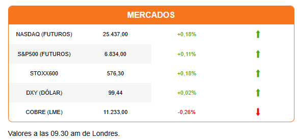 Algo de calma vuelve a los mercados. Una exitosa colocación de bonos en Japón ayuda a calmar el nerviosismo, mientras las acciones europeas operan con alzas moderadas con la mirada puesta en un posible acuerdo de paz para Ucrania. Los futuros de Wall Street operan entre planos y mixtos, pero claramente tratando una apertura al alza. Mientras, el bitcoin intenta un repunte.