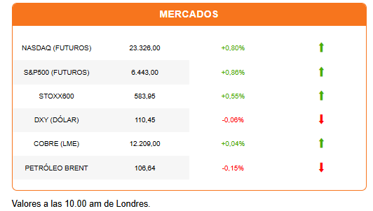 Los futuros estadounidenses avanzan a una apertura con fuertes alzas, impulsando con ellos las acciones europeas. El dólar frena su avanzada y el petróleo retrocede.