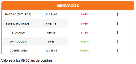 Los futuros de Wall Street preparan otra apertura en rojo, tras cuatro días consecutivos de pérdidas. Todas las miradas se concentran en Nvidia, que reportará sus resultados trimestrales tras el cierre de la sesión.