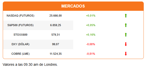 En la sesión europea destacan las acciones de defensa, especialmente la alemana Rheinmettal (+3,19%). Bloomberg reporta que el gobierno alemán se alista a autorizar la próxima semana inversiones y compras en Defensa por un récord de US$ 60 mil millones (52 mil millones de euros).