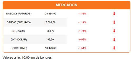 El mercado se pregunta si acaso la exuberancia reciente ha ocultado problemas en el sector privado. Los futuros de Wall Street pierden más de 1%, mientras el Stoxx 600 anota una caída de 1,74%. El dólar opera con pérdidas, al igual que otros activos vinculados a la toma de riesgo como el bitcoin y los metales.