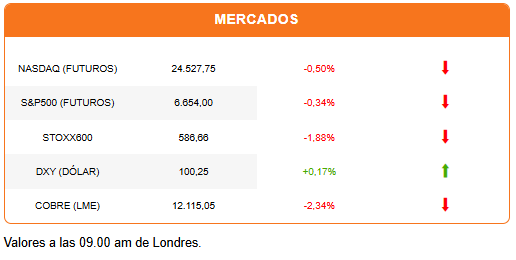 La IA es otro tema que continúa en agenda. Micron reportó resultados récord y elevó sus proyecciones para este año, en respuesta a la creciente demanda por sus dispositivos de memoria. Pero el anuncio de una inversión por US$25.000 millones, que aumentará en 2027, no cayó bien con los inversionistas, que castigan la acción con una caída de 5% antes de la apertura.