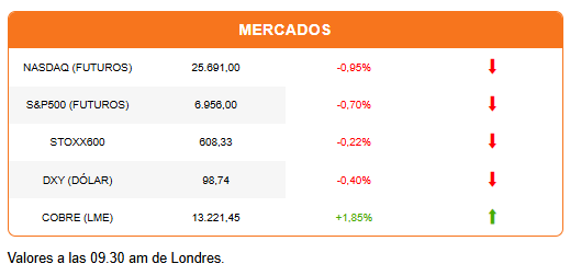 Los futuros de Wall Street se preparan para una apertura a la baja, siguiendo las pérdidas del inicio de las primeras horas en Europa. El dólar cae con fuerza (-0,28%) frente a las principales monedas, en un reflejo del regreso del trade: “vender EEUU”.