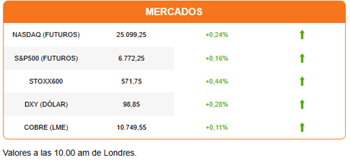 Teck recorta sus proyecciones de producción en Chile. La minera canadiense anunció que Quebrada Blanca producirá entre 170.000 y 190.000 toneladas de cobre este año —muy por debajo del rango de hasta 230.000 toneladas proyectado previamente— y redujo sus estimaciones hasta 2028. Anglo American respondió que los nuevos números son “bastante consistentes” con el estudio realizado antes de acordar la fusión y confirmó su plan estratégico. La firma Berenberg elevó esta mañana la recomendación para Anglo American a “comprar”.