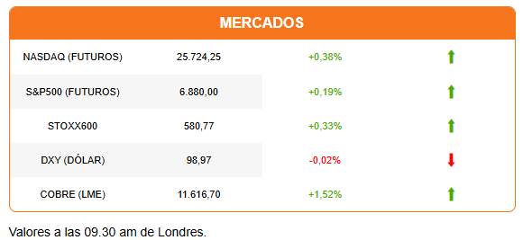 Las alzas se extienden al Nasdaq y el Dow Jones y las acciones europeas. El dólar, por el contrario, opera con una ligera caída, todavía presionado por un escenario de más recortes de tasas por parte de la Fed.