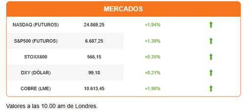 El mercado le cree a Donald Trump y los futuros de Wall Street se alistan para una apertura con un fuerte repunte desde el cierre en rojo del viernes. El oro, la plata y el cobre se suman a las alzas, mientras el dólar opera plano.
