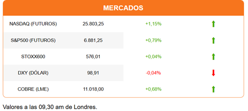 Actuando como un termómetro del optimismo del mercado, el cobre se acerca a un nuevo máximo en la bolsa de Londres. El metal marcó US$ 11.050 por tonelada en el arranque de la sesión europea, a solo US$ 54 del récord alcanzado en mayo de 2024.