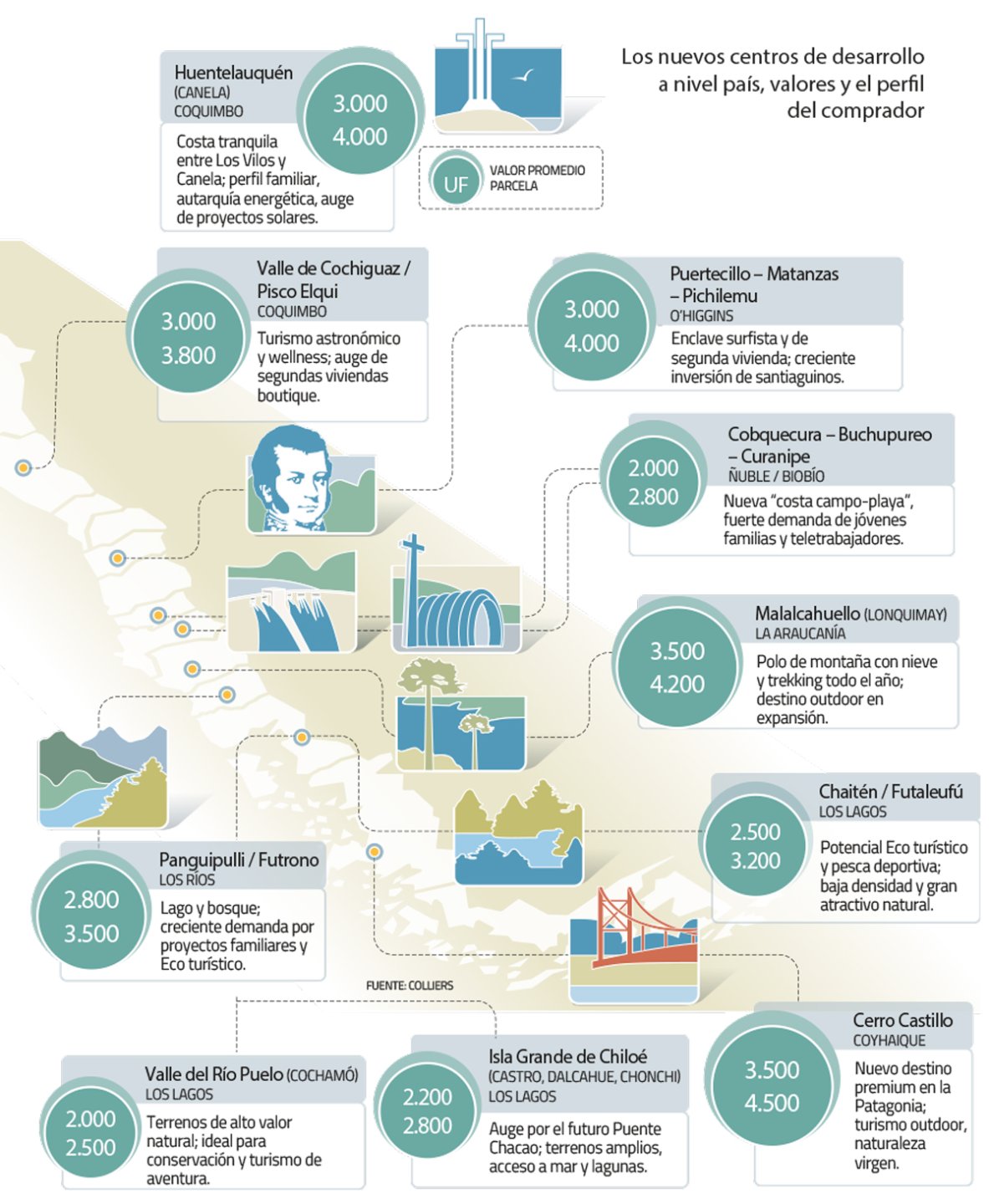 Por décadas, los polos inmobiliarios/turísticos en regiones se reducían a unos pocos nombres, y se repetían Viña del Mar, La Serena y Pucón. Pero, desde hace unos años, se han sumado zonas más ligadas a la naturaleza y a estilos de vida más tranquilos.