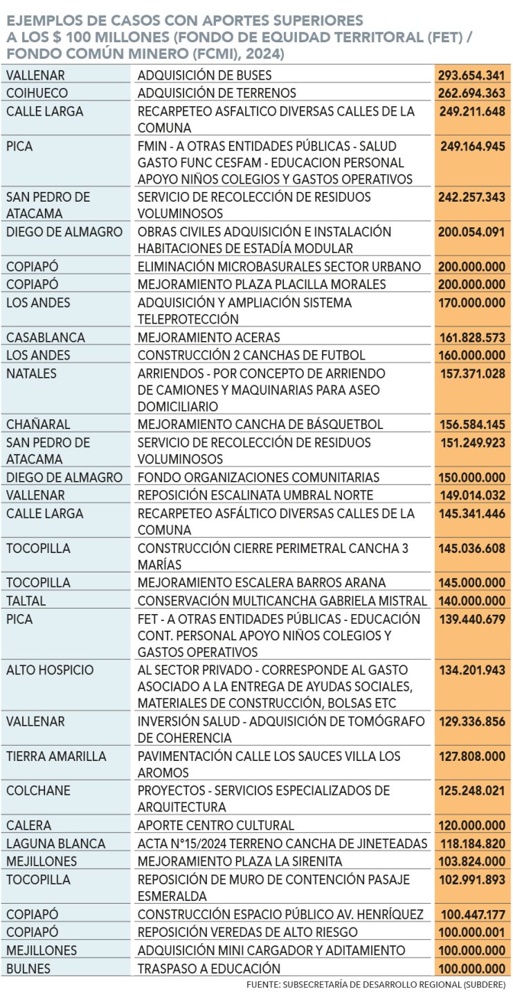 Los municipios ya recibieron este año $ 218.615 millones. De eso, $ 165.905 millones corresponden al FET para 301 comunas de las 16 regiones del país, y $ 52.700 millones al FCMI, para 44 comunas de seis regiones mineras.