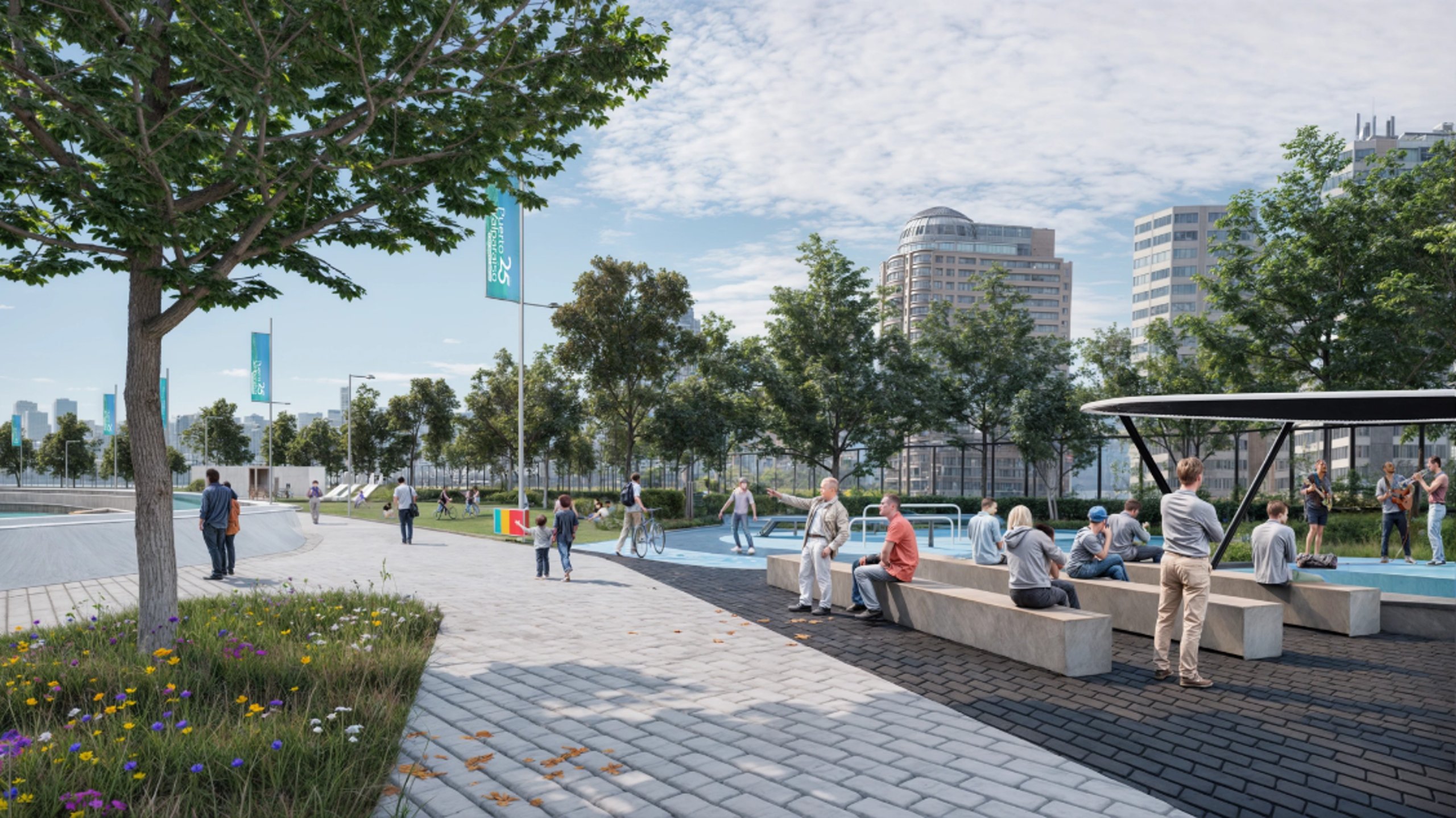 Entre las obras consideradas figura el Paseo Malecón, de 10.024 m², que se extenderá entre el Terminal de Pasajeros y el sector Bellavista. También se proyecta la Plaza del Mar, de 2.664 m², que conectará el paseo con avenida Errázuriz mediante un acceso peatonal bajo la línea férrea y el Mirador del Puerto, de 1.535 m², en el costado oriente del nuevo Sitio Costanera.