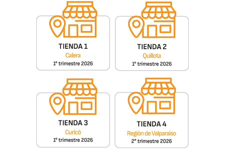 La hoja de ruta contempla la apertura de cuatro tiendas durante el próximo año. De ellas, dos estarán ubicadas en Calera y Quillota y tendrán una superficie cercana a los 3.000 metros cuadrados. La tercera apertura será en Curicó, donde la compañía migrará su tienda actual a una de mayor tamaño, y la cuarta locación estará en la Región de Valparaíso y se inauguraría hacia fines del primer semestre de 2026.